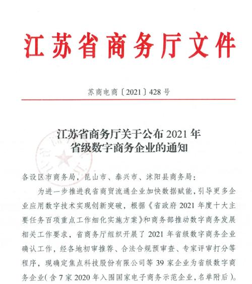 为进一步推进江苏商贸流通企业加快数据赋能,引导更多企业应用数字技术实现创新突破,省商务厅开展了2021省级数字商务企业的的确认工作。江苏淮海科技城江苏邵悦电子商务有限…
