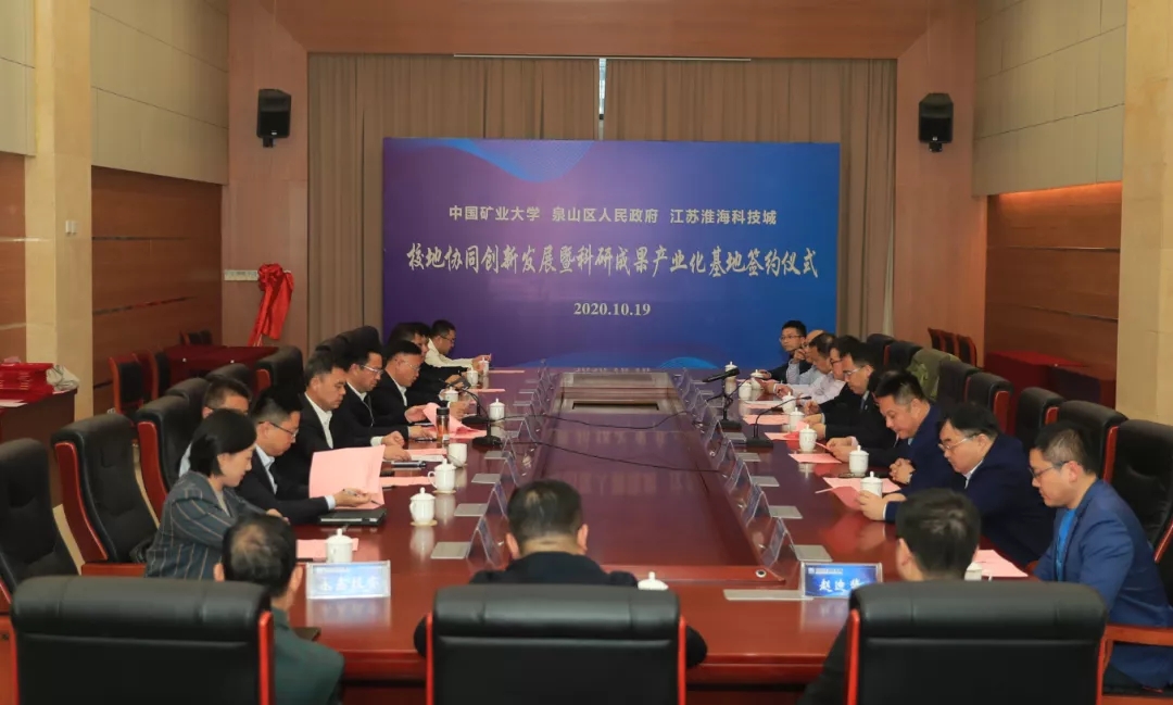 10月19日下午,校地协同创新发展签约暨中国矿业大学-江苏淮海科技城科研成果产业化基地揭牌仪式在淮海科技城举行,中国矿大薛勇教授的大气监测和遥感测绘等4个首批入园科技成…