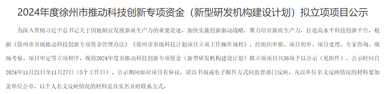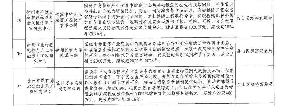 2024年,科技城乘势而上,积极辅导组织园区企业申报省市两级科研平台建设,目前已新建设7家省市两级科研平台(新型研发机构),其中中国矿业大学获批建设江苏省首批概念验证中心,江苏开普勒导航技术研究院、江苏世安健康科技研究院等2家企业通过市级新型研发机构备案,江苏中矿大正表面工程技术有限公司、徐州珂尔玛科技有限公司、江苏费尔曼安全科技有限公司、徐州瑞控机电科技有限公司等4家企业分别获批市级工程研究中心和市级工程技术研究中心建设。平台将分别围绕安全应急、北斗高精度定位产业化、新能源等热点领域开展创新成果转化应用,赋能企业发展和产业进步,进一步促进淮海科技城创新要素集聚和创新引领能力提升。