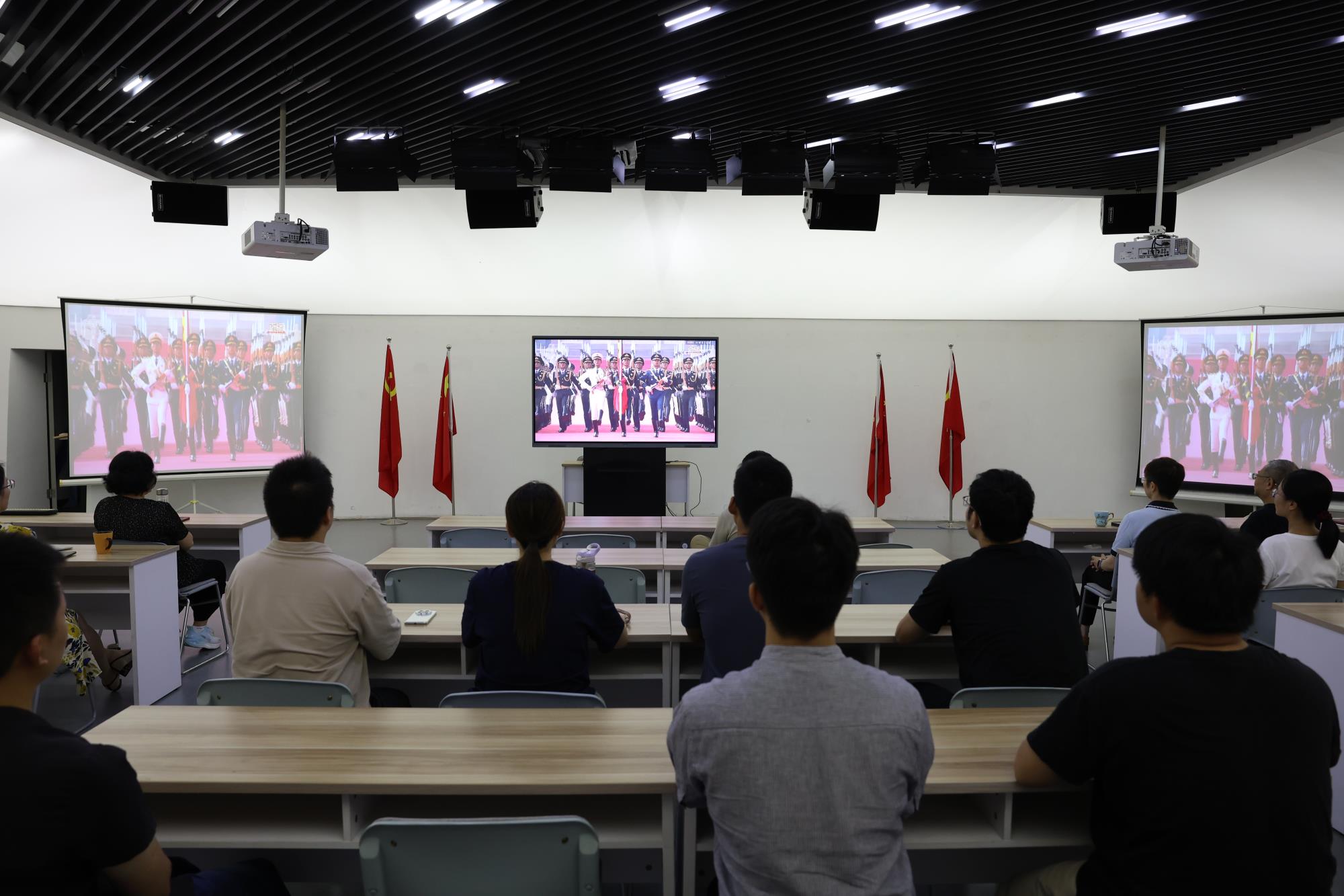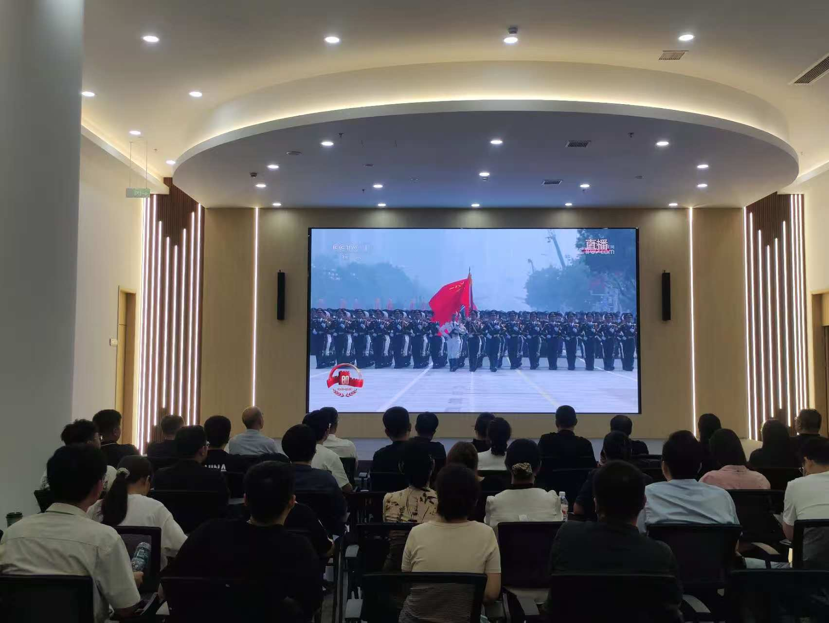 科技城管委会及园区企业收看直播实况,共同铭记历史、致敬伟大胜利。